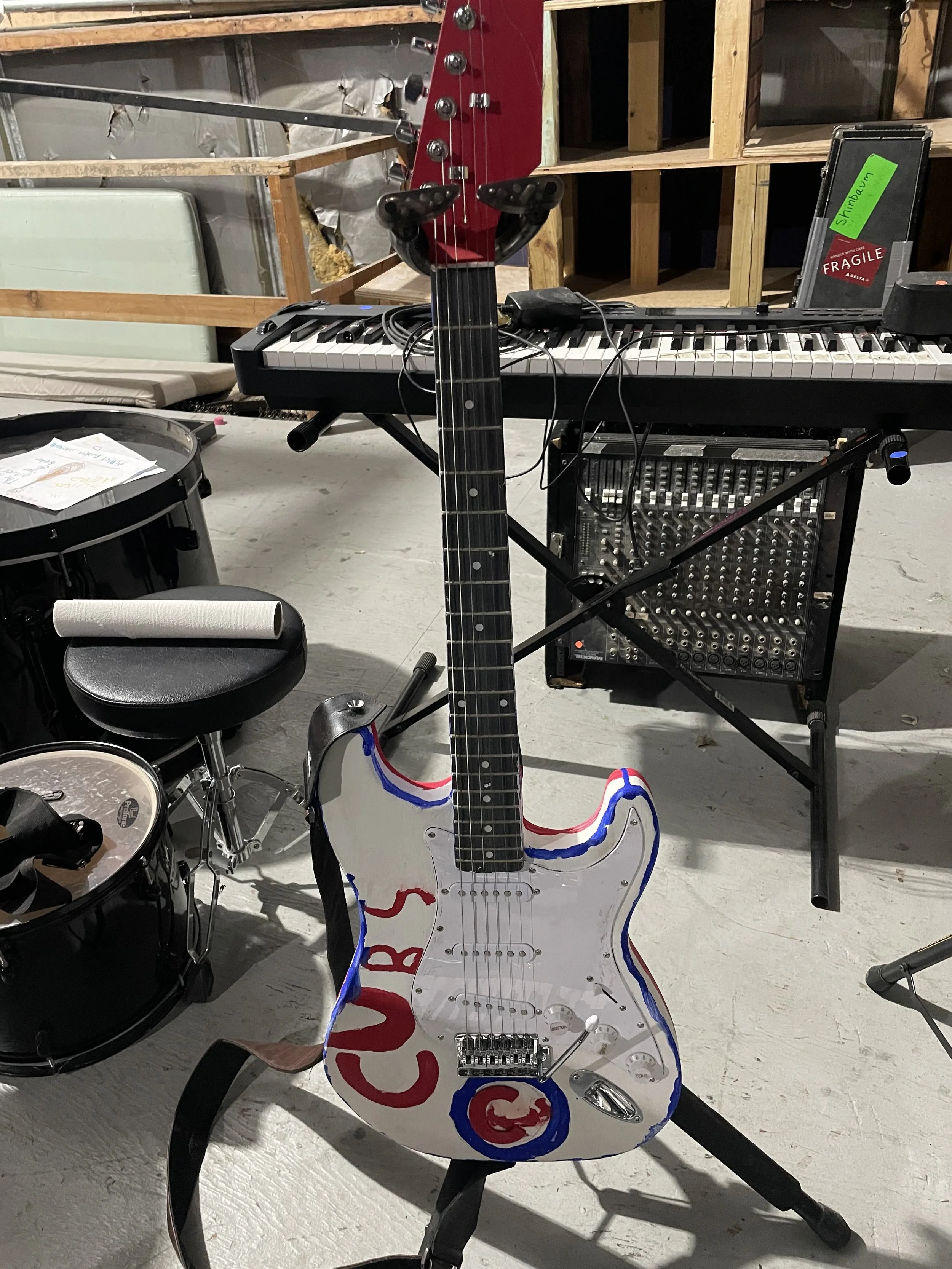 Jake, Liam, Gabe, Hazel, Gideon, and Eddie helped paint and build the newest guitar to the Beber collection! Go Cubs Go!